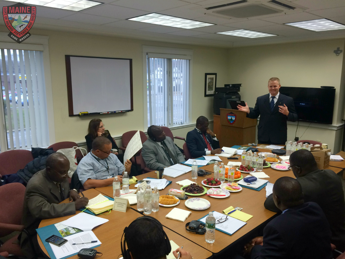 [Augusta, Maine – April 8, 2016] For the second year in a row, the Maine Warden Service helped host the International Visitor Leadership Program. A group of eight people from Mozambique, Africa, that included two chief game wardens, a district prosecutor, a judicial magistrate (judge), an assistant AG, a journalist, and others, visited with leadership in the Maine Warden Service for the day as part of their larger tour of the United States. This group is in the United States under the auspices of the U.S. State Department’s International Visitor Leadership Program, a more than 75-year-old program started by former U.S. President Franklin D. Roosevelt in 1940. This program was arranged by the World Affairs Council of Maine, Meridian International Center in Washington D.C., and the Maine Warden Service.